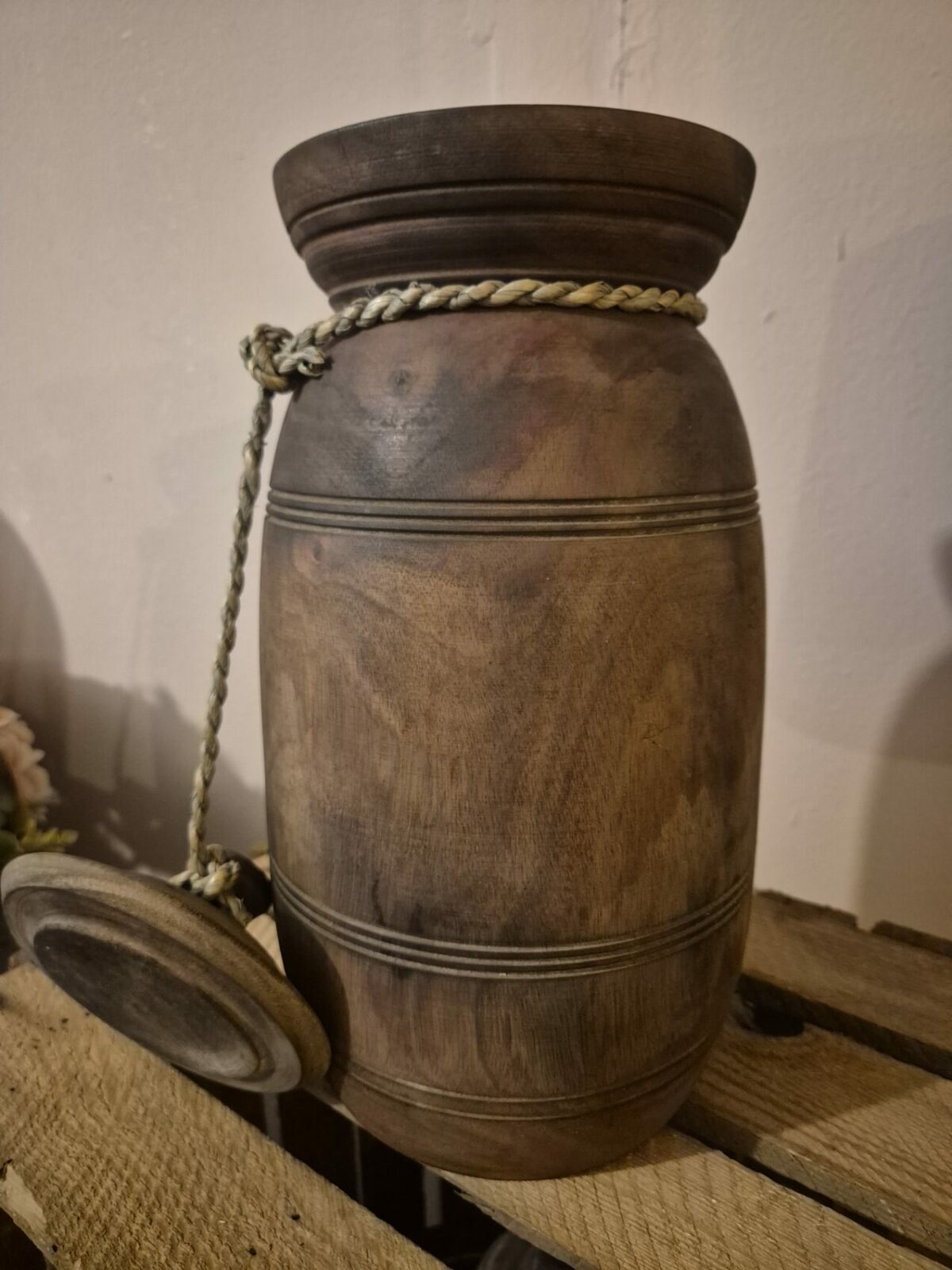 Sobere houten Nepalese pot.