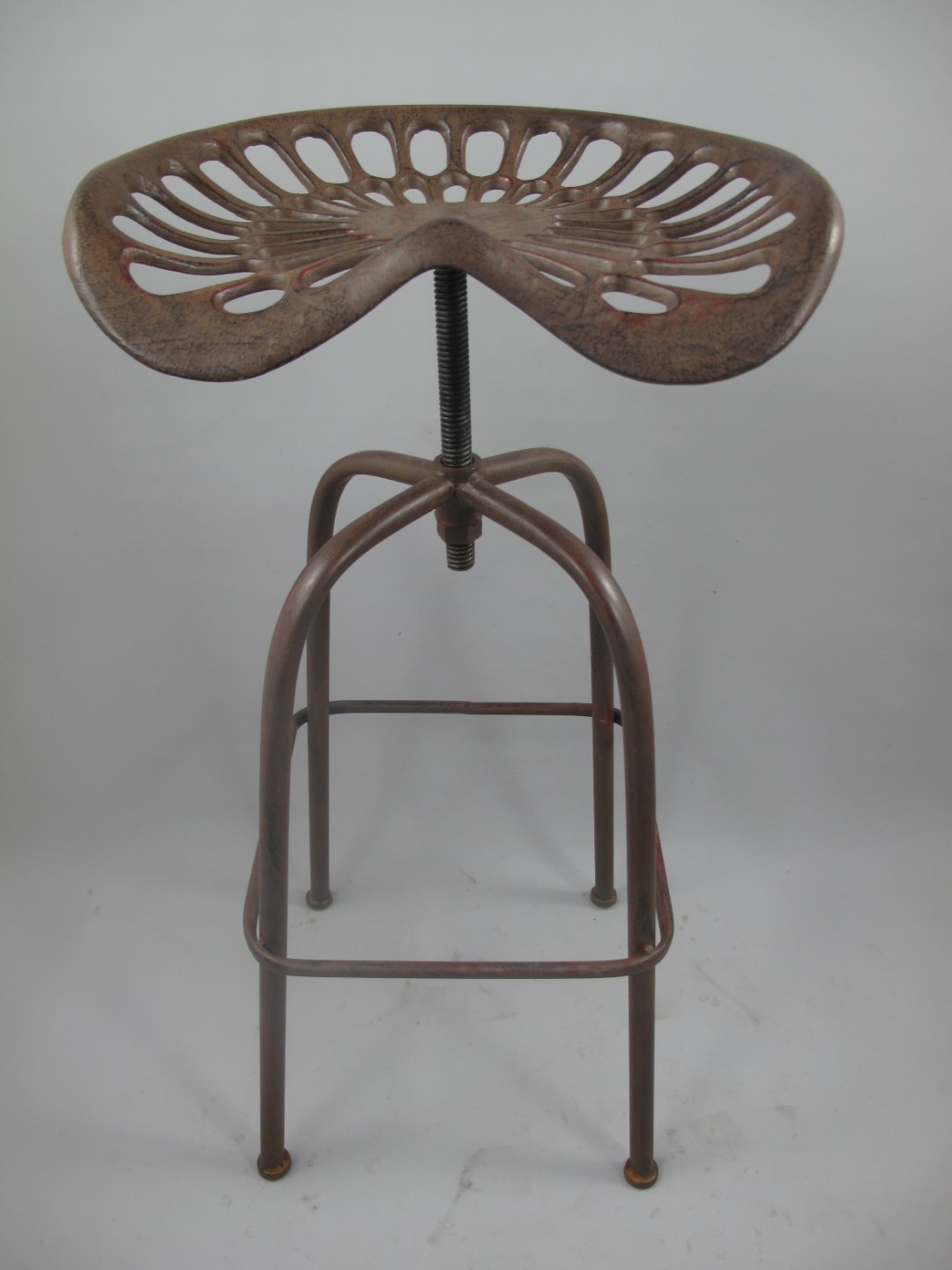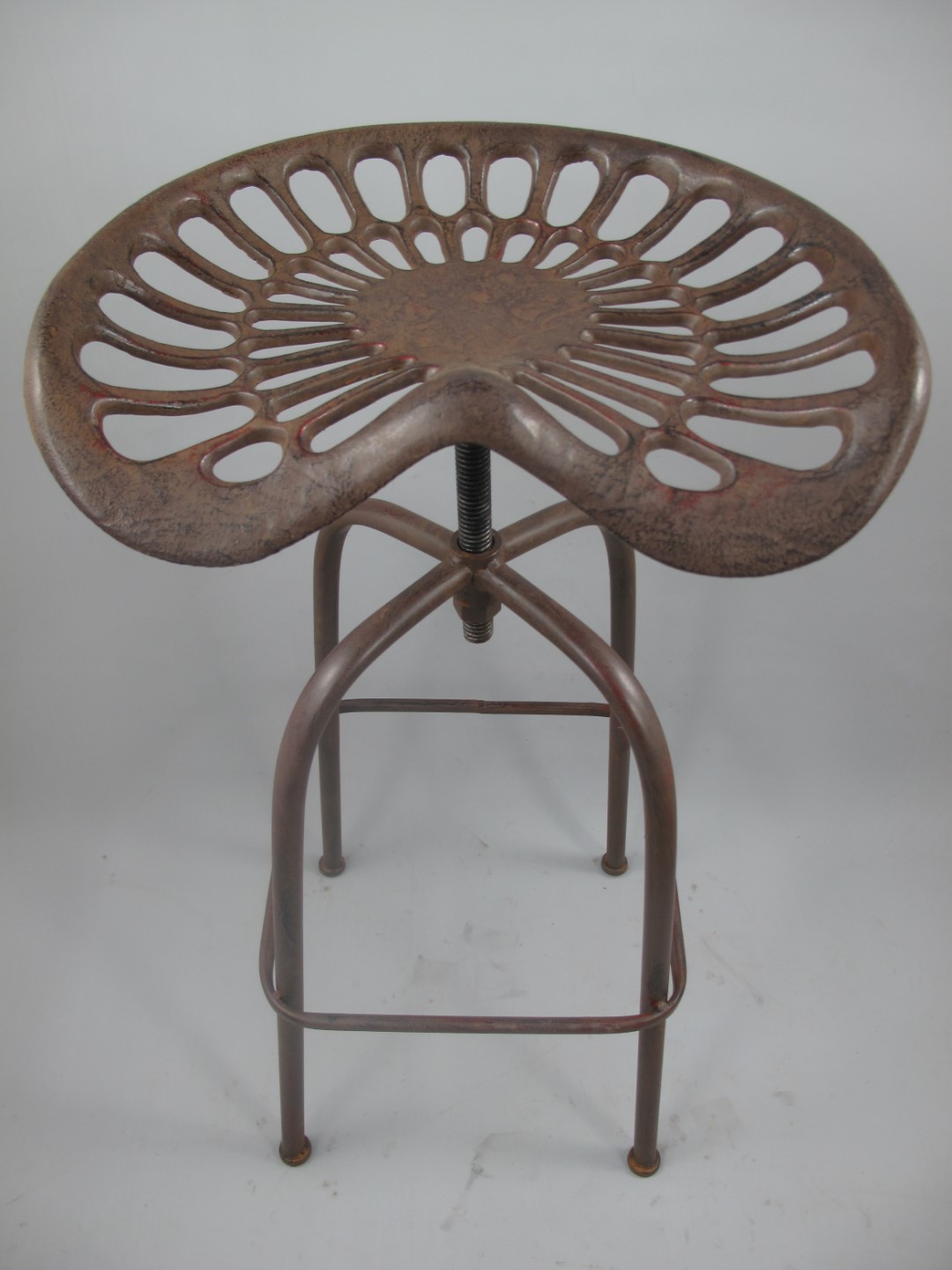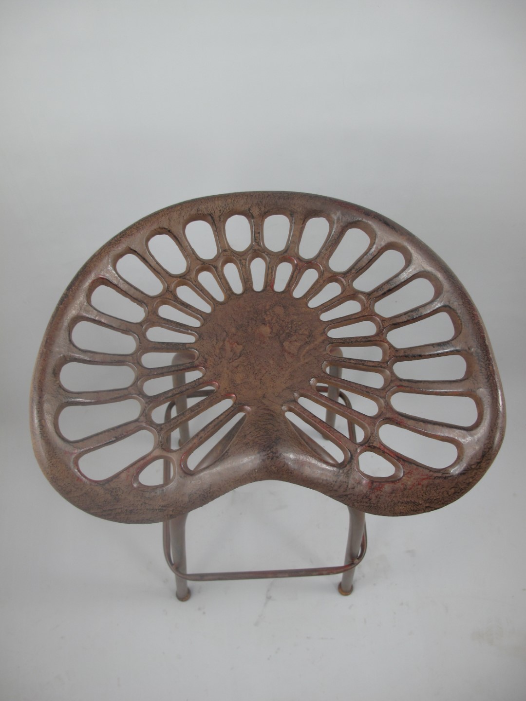 Zwaar gietijzeren barkruk in de vorm van een tractor zitting, heeft een comfortabel zitcomfort.