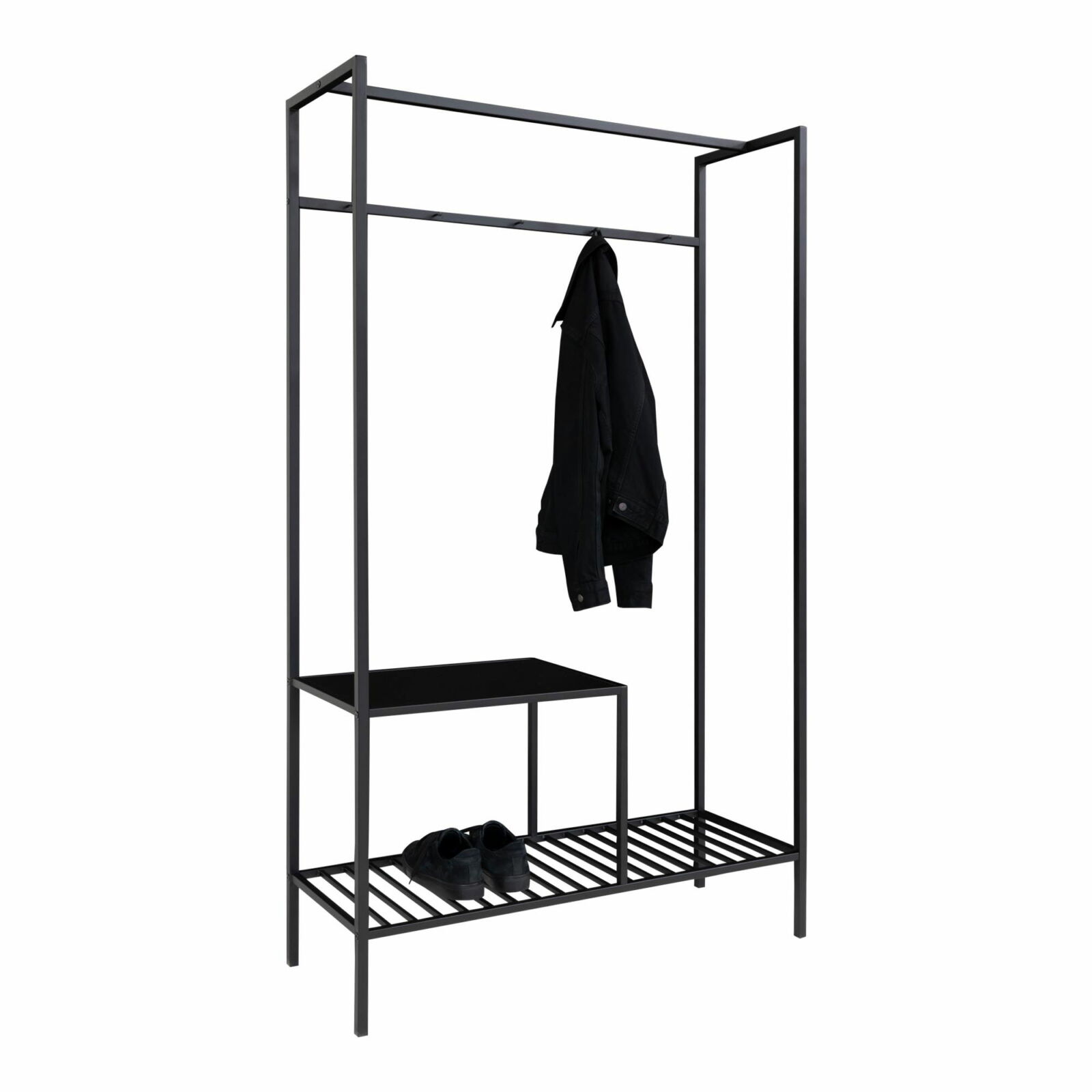 Vita Wardrobe – Kledingkast zwart frame twee zwarte planken.
